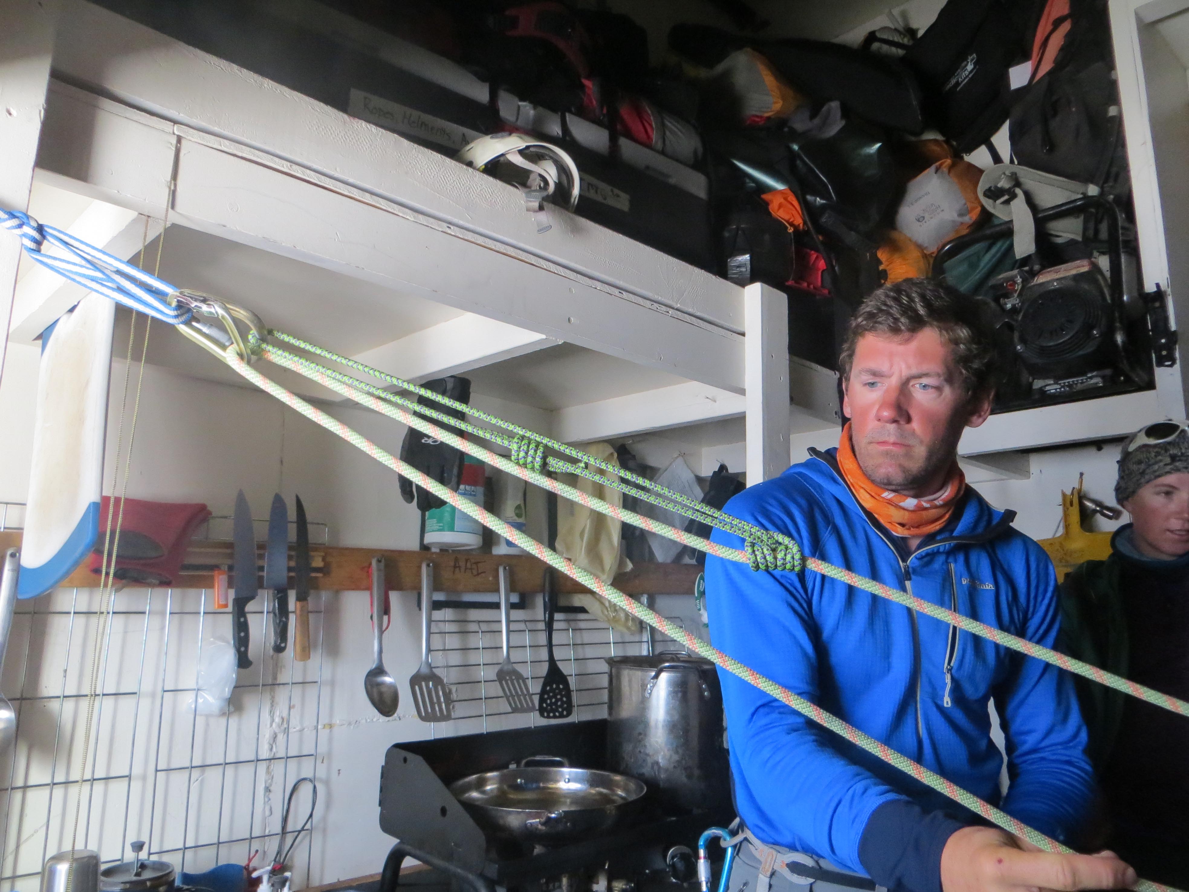 We again got up at 6, and after breakfast began practicing digging anchors & setting up 2:1 “C”, and 3:1 “Z” pulley systems to boost our mechanical advantage & assist in rescuing people(in this case we used weighted packs) from the “crevasse” (here, a very steep slope). It’s really amazing what you can do with just a few ropes, Carabiners & some Prussik knots! We dug our anchors – Double Inline Deadman, meaning two separate anchors, one a few feet behind the other(to minimize the angle of rope between them & thus make the anchors more effective), and then ran a full simulated crevasse fall & rescue. With two people on a rope, and the weighted pack as a simulated third member, the pack was thrown off hillside, causing both team members to self-arrest to stop the pack’s fall.