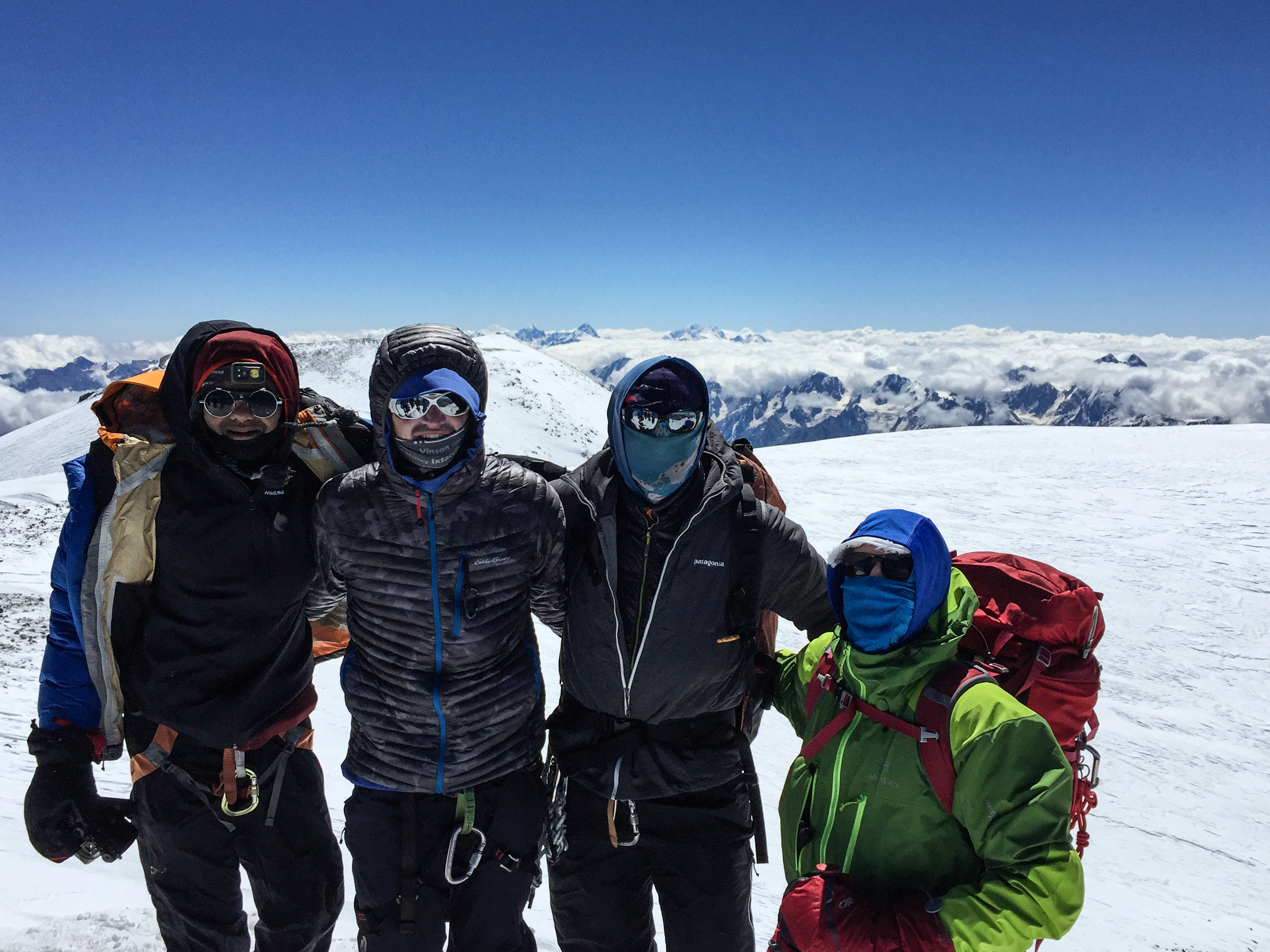 Sasha’s team, consisting of Randy and Gina made it to the summit shortly after us, and Igor’s team of Jo and Danijela had summited before us – having taken a snow-cat up to 16,000′. I think it was definitely the right call – they enjoyed their climb thoroughly.