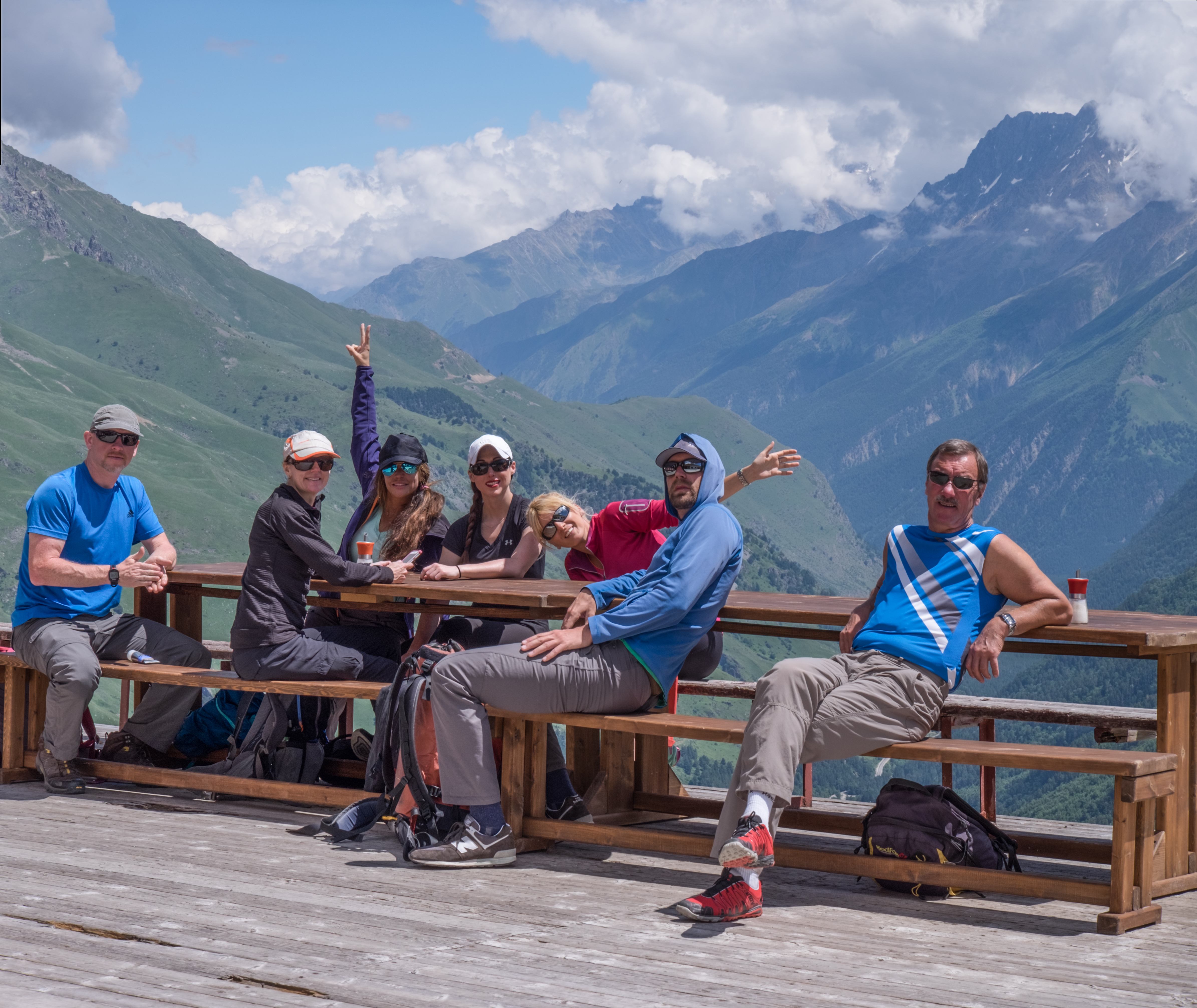 Jo, being among many things, a yoga instructor, gave lessons to Gina & Sasha while we were up there. The mountainous backdrop really made the area a perfect place to do yoga. We hung out for awhile and came back down to Cheget to have lunch at an outdoor place with nice ambiance. Can’t say the same about the food though!