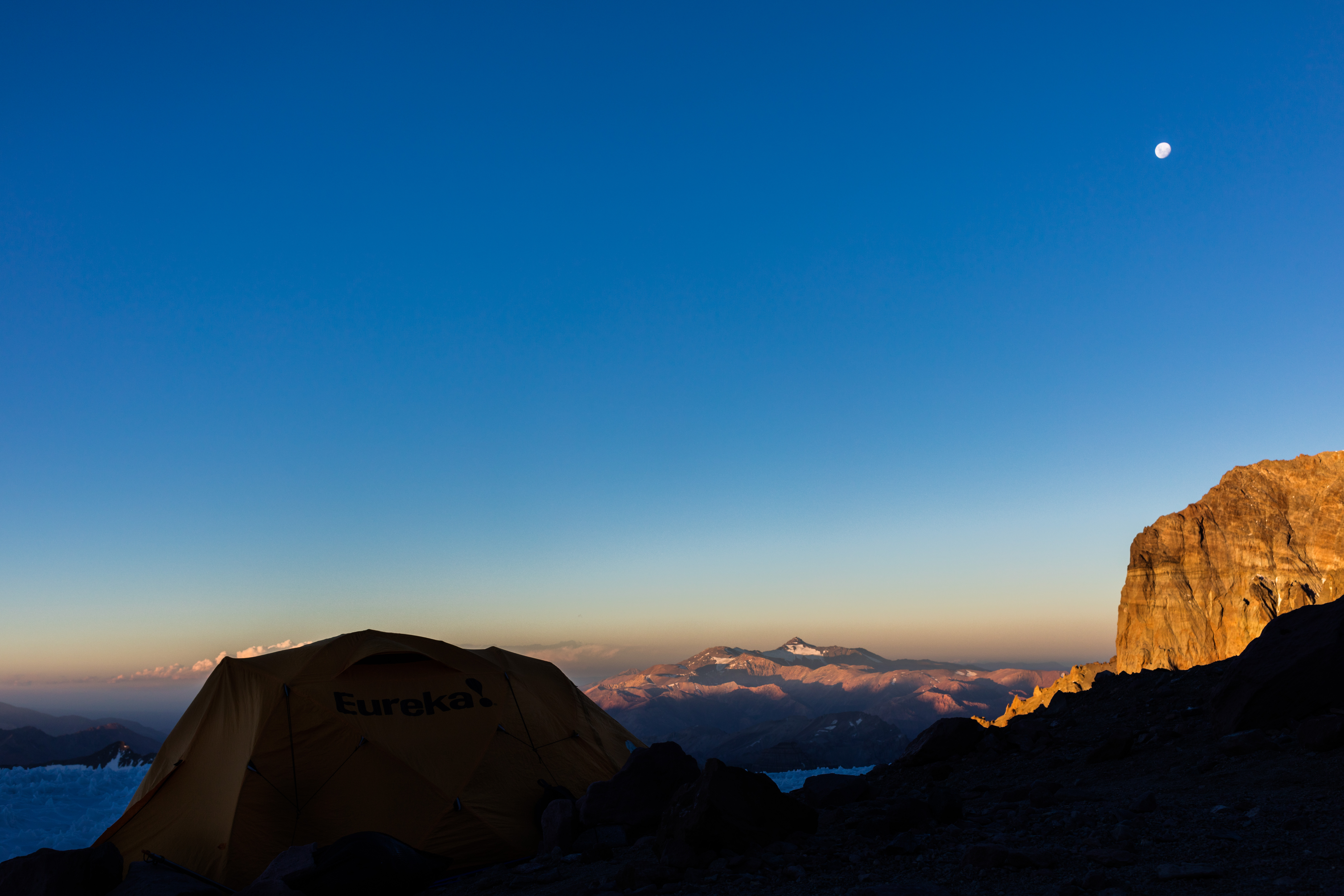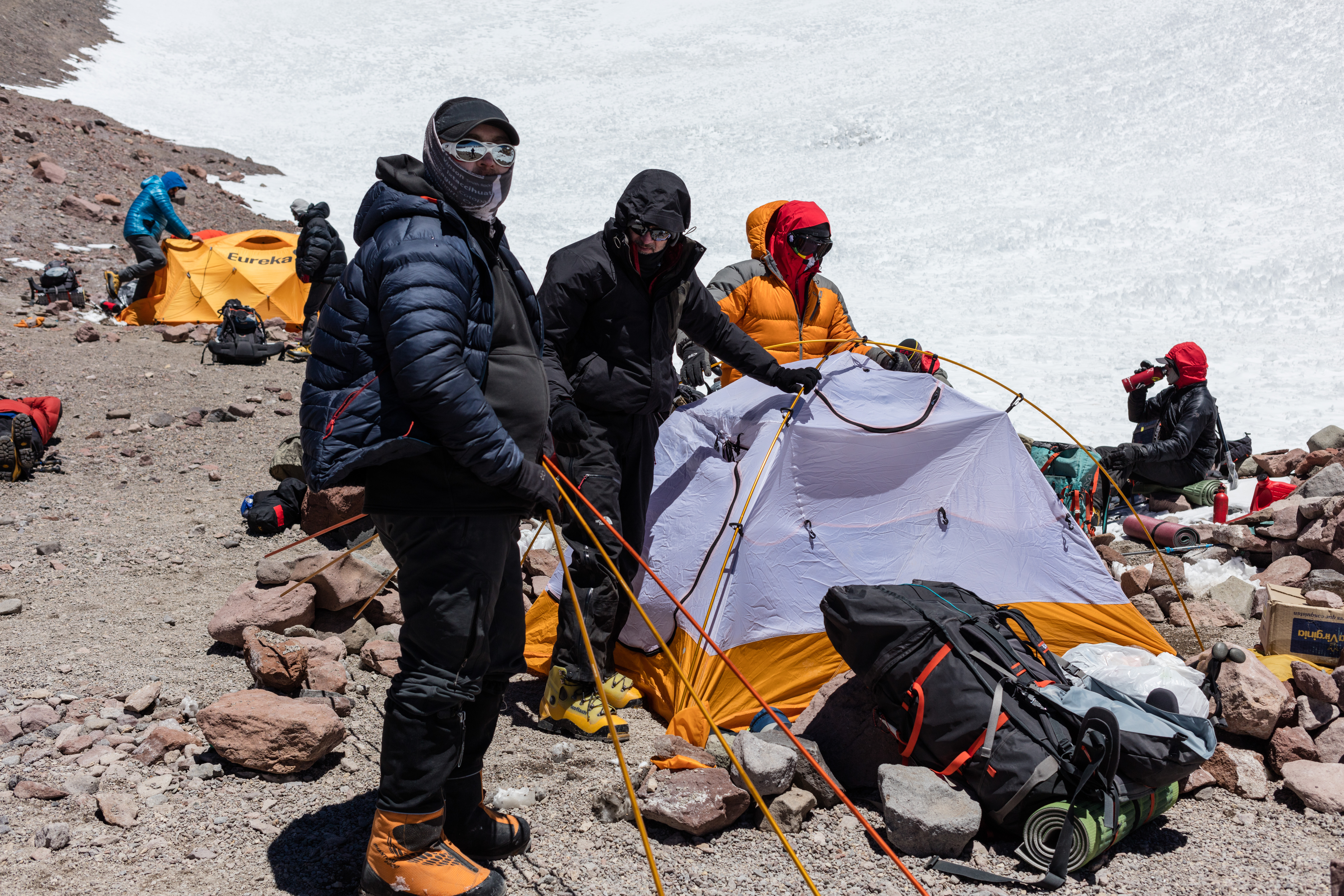Weather was similarly perfect to yesterday, and with slightly less wind too, but it was still pretty windy at the saddle where we again stopped for a break. Then our next break was at another windy location. We clearly pick our rest stops well here on Aconcagua! I say that but the section leading up to this was very steep – not really conducive to stopping so you don’t have much of a choice. It was nice that we didn’t have to come back down today though, making it a shorter day. We’ve gotten really lucky so far and are hoping that everything stays that way. We’re now at about 18,500 ft (15,600 m) so the air is getting quite thin. Tomorrow we’ll be up at 19,500 at Camp Three which would represent a new high for me – breaking Kilimanjaro at 19,341. To think I’ll be sleeping at a higher elevation than Kili’s summit is pretty exciting!