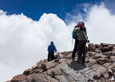 That said, we persevered. And we made it. I was the first in our group to summit(how does that feel, Craig?!) but the others were right behind. I will admit that this was a very emotional moment for me. The culmination of two weeks of slogging, good weather, luck and perfect guiding have all resulted in this singular moment. I can not really describe the feeling – you’ll have to climb your own mountain to experience it, but suffice it to say that it made all of the hardships we went through absolutely worth it.