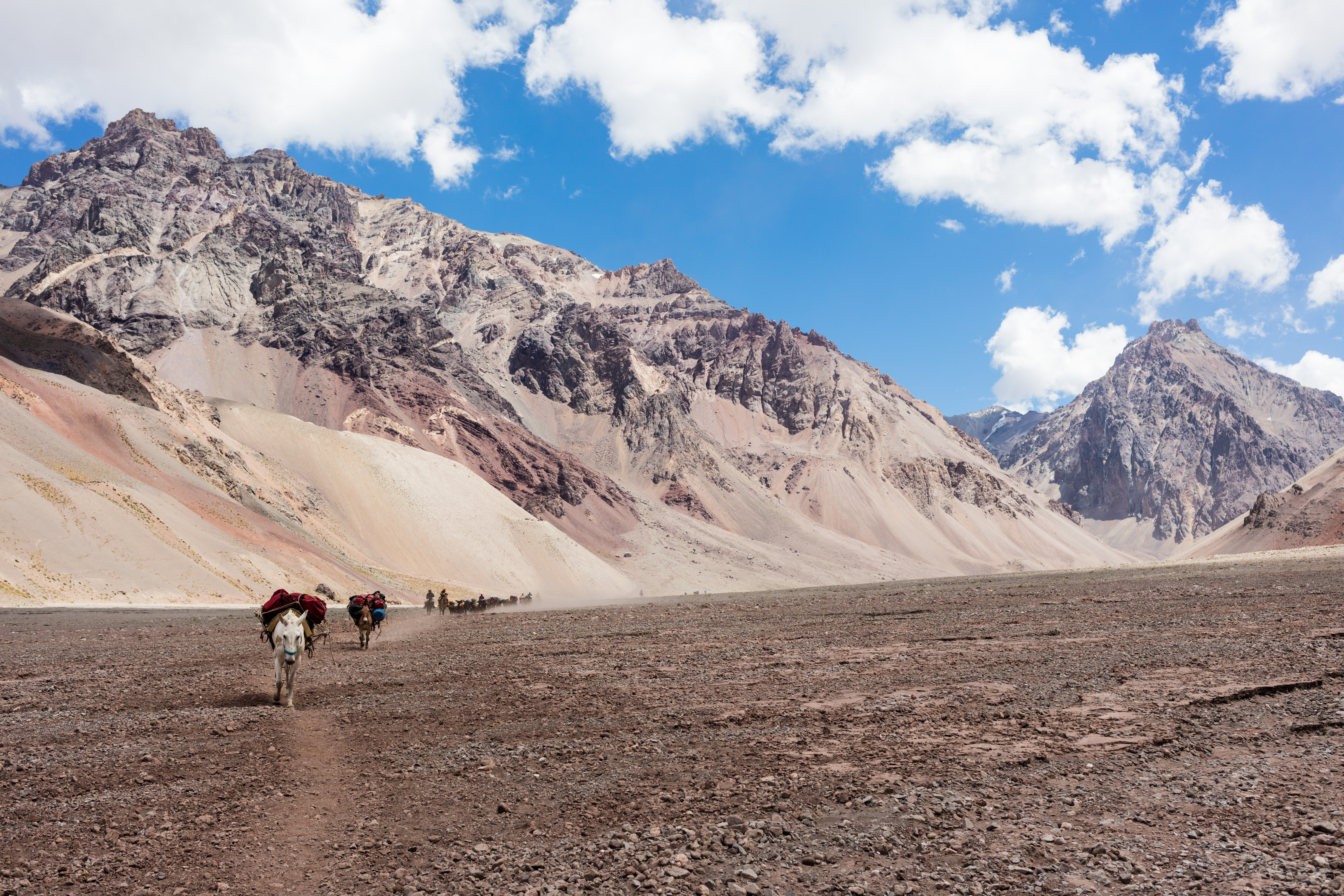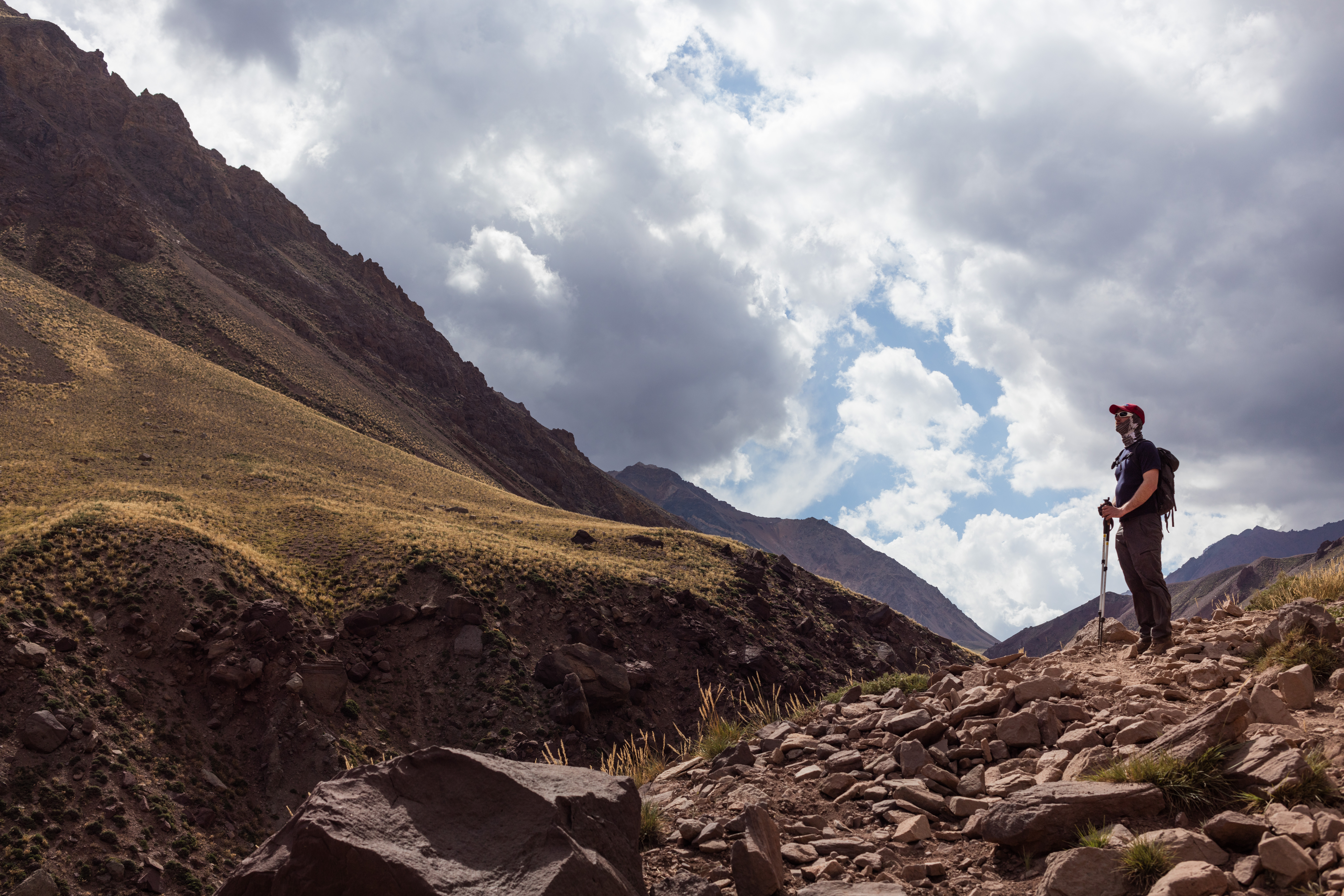 We had some ups and downs initially before it flattened out for awhile while we walked through a giant dried riverbed. With Aconcagua to our left and high mountains to our right, this was one of the most beautiful days of the climb. The further we hiked and the more we descended, the more vegetation returned and the greener things became. The group became very separated, and we ended up over an hour apart by the end.