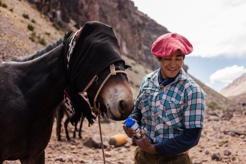 After about five hours of hiking we arrived at our first camp – Pampa de Lenas at 9,200 ft(2800 m). Shortly thereafter our mules arrived carrying our gear, herded by the Gauchos(the mule dudes). It was sometime around here that Craig(pictured above) mistook their name as Gwapos – a nickname that stuck around for the entire trip. These guys are tough – sleeping under the stars despite it getting cold at night, and carrying around giant knives strapped to their backs.