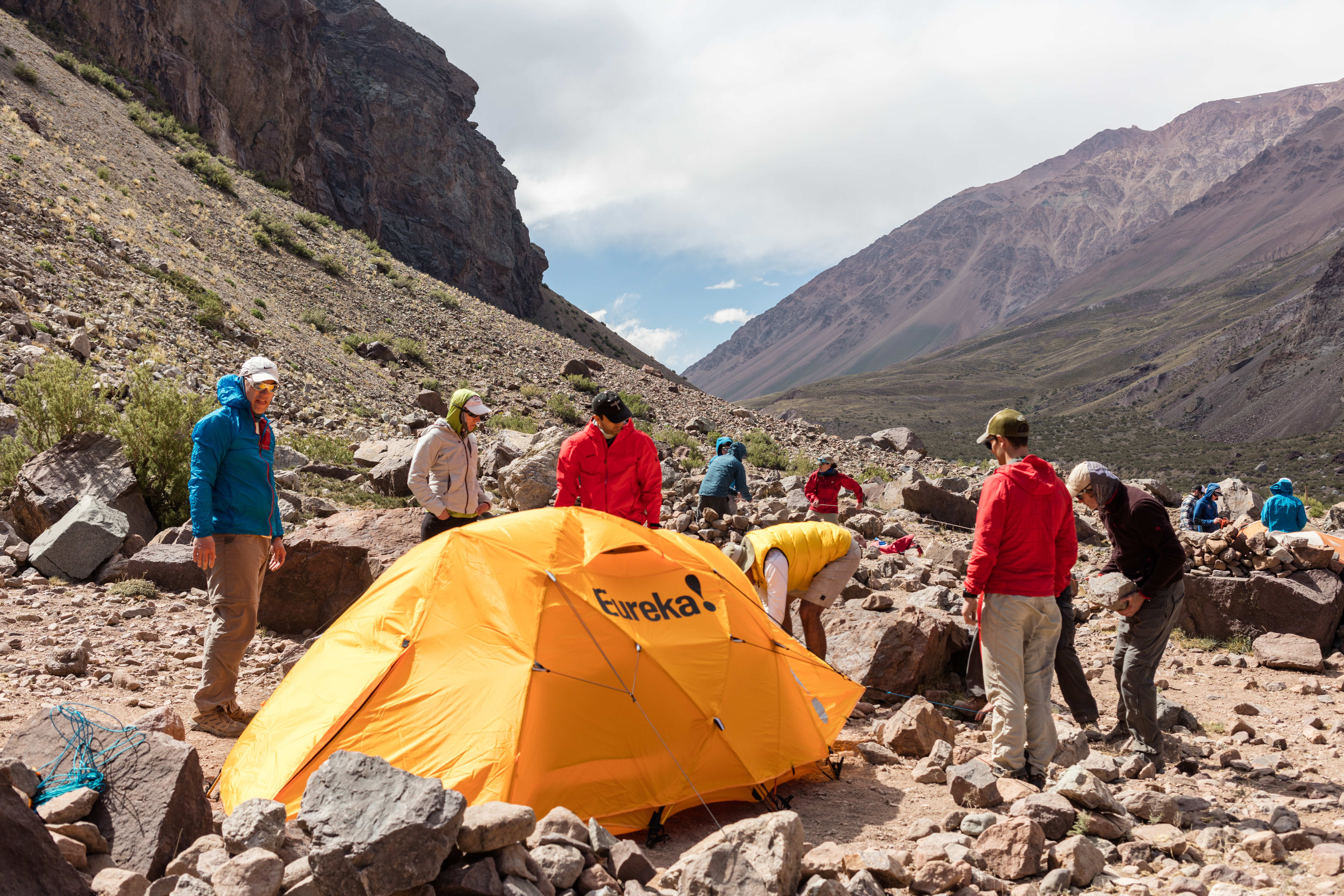 Nestled in a valley surrounded by gigantic mountains stretching a mile above the camp, it was truly a beautiful location. You just don’t see this kind of terrain in the US. We got a demonstration on how to set up our tents for the first time. We’re using the standard Eureka tents IMG uses everywhere.