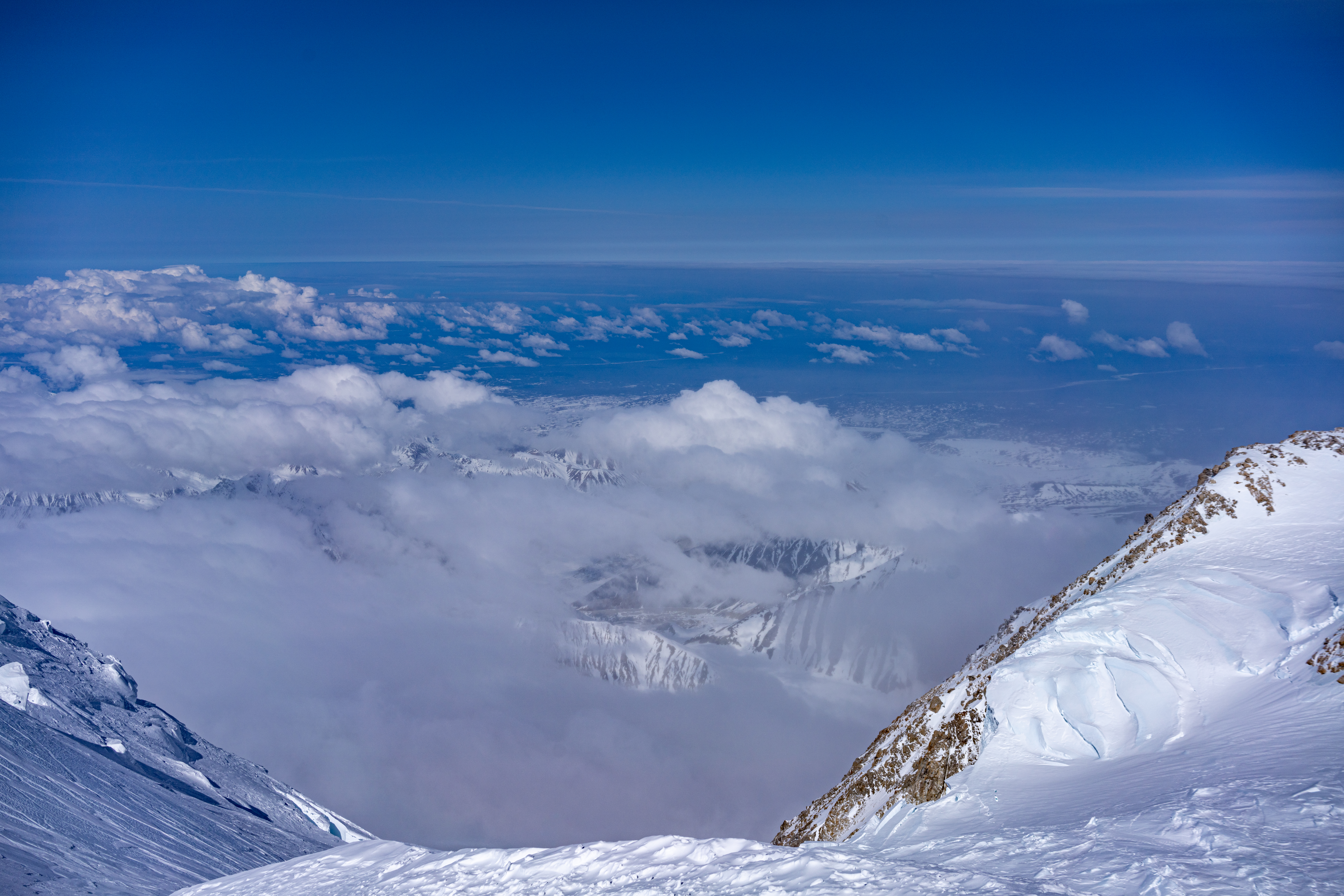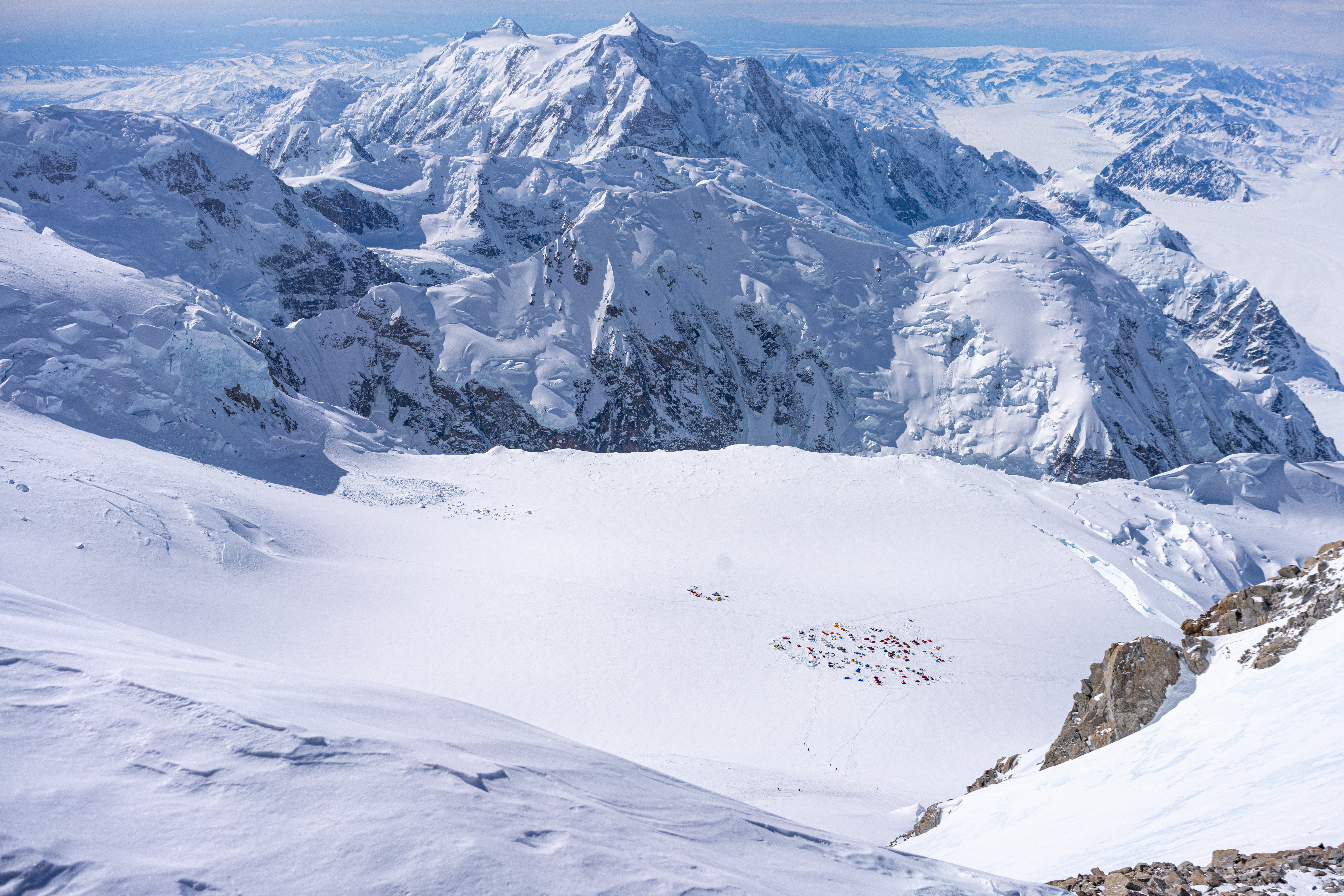 Luckily, several AMS teams had bunched up at Seventeen camp awaiting a summit window, so they helped us flatten the ground and build snow walls. Colby wanted big, beefy walls, because Seventeen Camp can see up to 100 mph winds at times. With several teams helping, we built Fort Knox, but I didn’t have any role in it. I was so exhausted, all I could do was sit on my pack and watch.